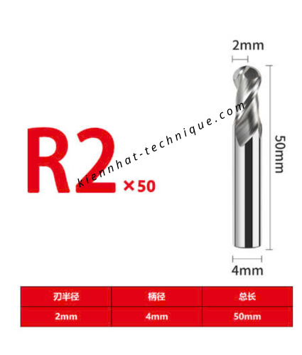 DAO PHAY CẦU NHÔM R2 × 8 × 50 × 4 × 2T