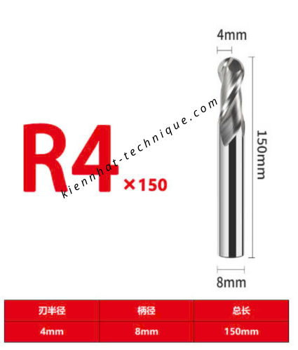 DAO PHAY CẦU NHÔM R4 × 16 × 150 × 8 × 2T