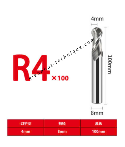 DAO PHAY CẦU NHÔM R4 × 16 × 100 × 8 × 2T