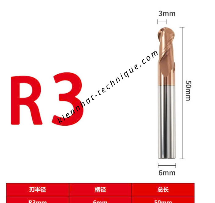 Dao phay cầu R3 × 12 × 50 × 6