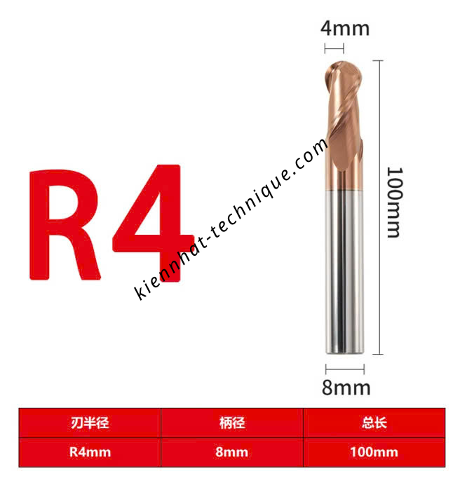 DAO PHAY CẦU R4 × 16 × 100 × 8