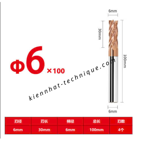 Dao phay phá thô D6*30*100*6-4F