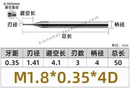 Đặt mua Dao phay ren hợp kim 0.35*4.1*50*4 P0.35 (3 răng)