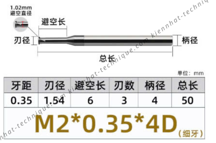 Đặt mua Dao phay ren hợp kim 0.35*6*50*4 P0.35 (1 răng)