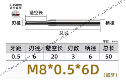 Dao phay ren hợp kim 0.5*20*50*6 P0.5 (1 răng )