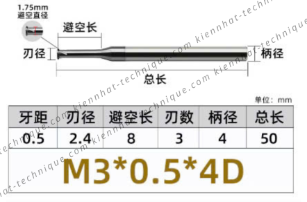 Dao phay ren hợp kim 0.5*8*50*4 P0.5 (1 răng)