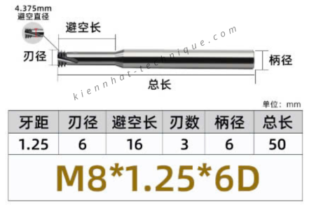 Dao phay ren hợp kim 1.25*16*50*6 P1.25 (3 răng)