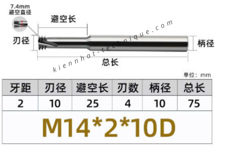 Đặt mua Dao phay ren hợp kim 2*25*75*10 P2 (3 răng)