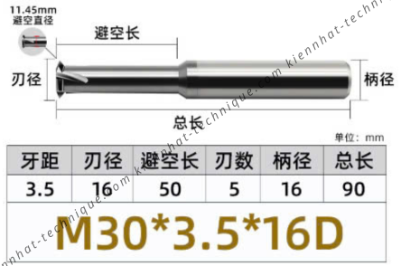 Đặt mua Dao phay ren hợp kim 3.5*50*90*16 P3.5 (1 răng )