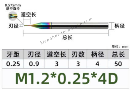 Dao phay ren hợp kim phủ DLC (nhôm) 0.25*3*50*4 P0.25 (3răng)
