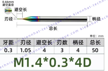 Đặt mua Dao phay ren hợp kim phủ DLC (nhôm) 0.3*4*50*4 P0.3 (1 răng)
