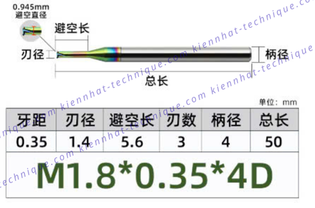 Dao phay ren hợp kim phủ DLC (nhôm) 0.35*5.6*50*4 P0.35 (1 răng)