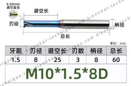 Đặt mua Dao phay ren hợp kim phủ DLC (nhôm) 1.75*30*75*10 P1.75 (1 răng)
