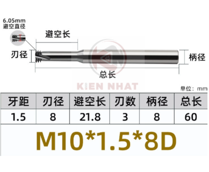 Đặt mua Dao phay ren M10X1.5 (7.9*28*60*8) (3 răng )