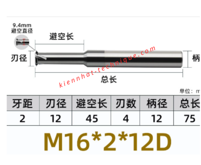 Dao phay ren M16X2 (12*45*75*12) (1 răng )
