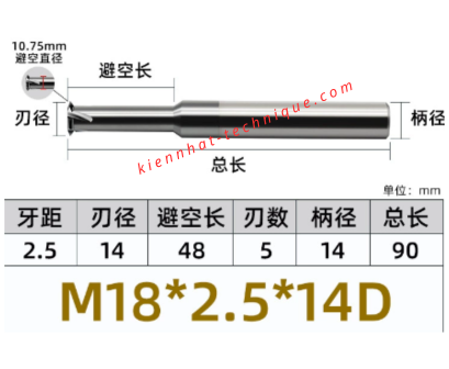 🔧 Dao phay ren M18×2.5 (14×48×90×14) – 1 răng