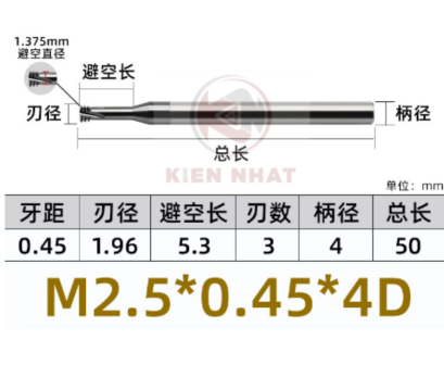 🔧 Dao phay ren M2.5×0.45 – 3 răng