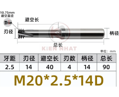🔧 Dao phay ren M20×2.5 – 3 răng