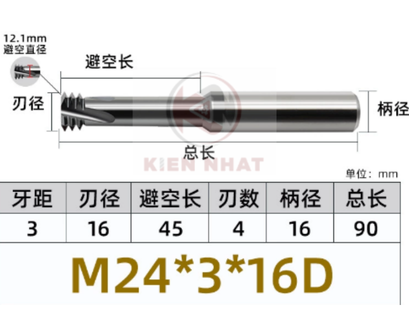🔧 Dao phay ren M24×3 – 3 răng