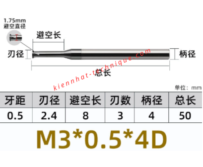 🔧 Dao phay ren M3×0.5 (2.4×9×50×4) – 1 răng