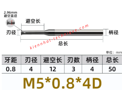 🔧 Dao phay ren M5×0.8 (3.9×15×50×4) – 1 răng