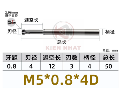 Dao phay ren M5X0.8 (3.9*15*50*6) (3 răng )