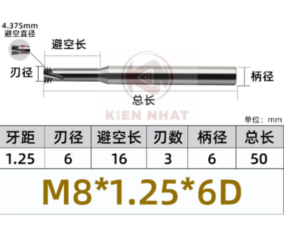 🔧 Dao phay ren M8×1.25 – 3 răng