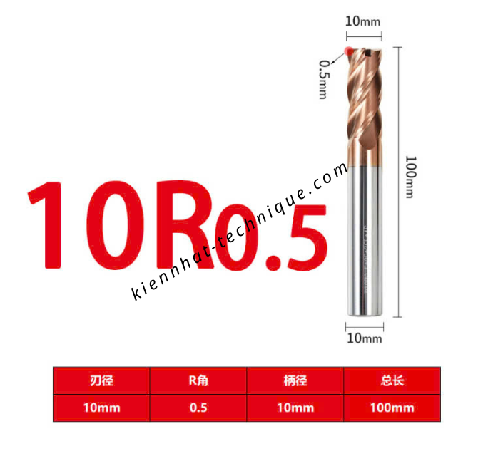 Dao phay trụ cầu D10 (R0.5) * 25 * 100 – 4F