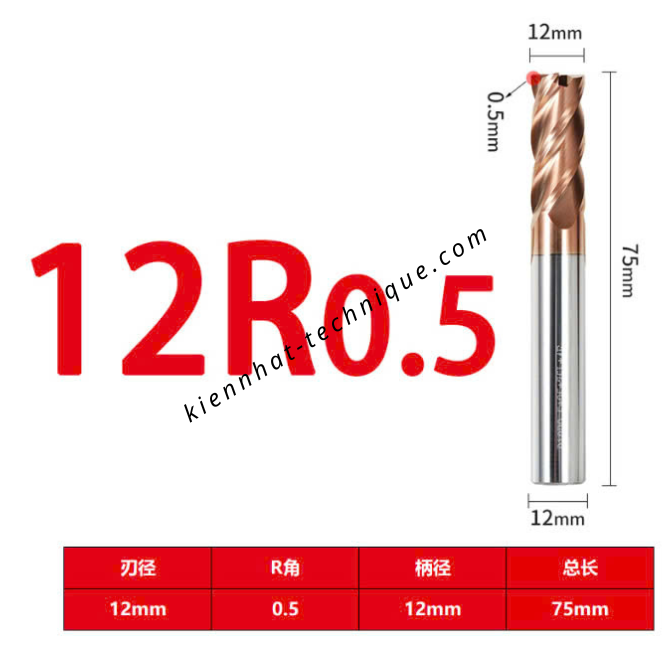 Dao phay trụ cầu D12 (R0.5) * 30 * 75 – 4F