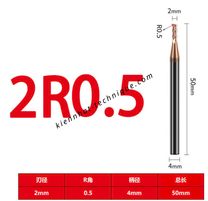 Dao phay trụ cầu D2 (R0.5) là dao phay CNC chuyên dùng cho gia công tinh các chi tiết rất nhỏ, bề mặt cong và biên dạng 3D yêu cầu độ chính xác cao. Với chiều dài cắt 6 mm và chiều dài tổng 50 mm, dao phù hợp cho các biên dạng nhỏ và sâu vừa, trong khi mũi cầu bo R0.5 giúp bề mặt sau gia công mịn và ổn định.