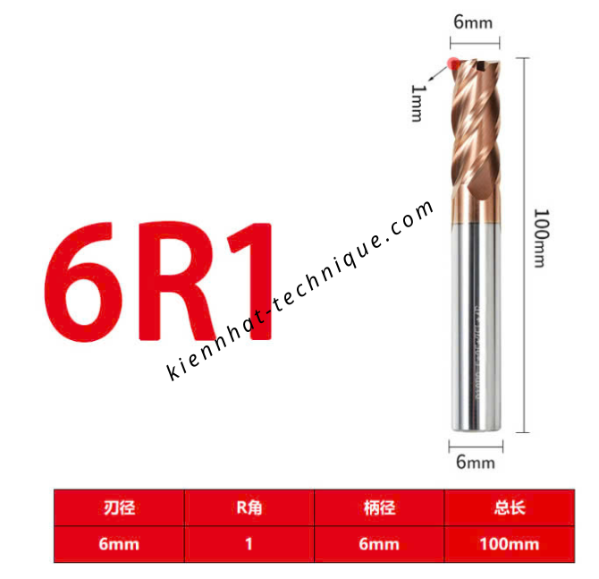 Dao phay Trụ cầu D6(R1)*30*100-4F