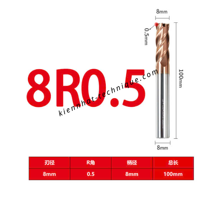 Dao phay trụ cầu D8 (R0.5) * 35 * 100 – 4F
