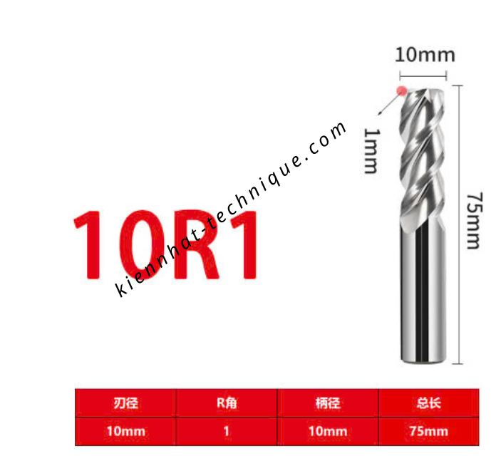 Dao phay trụ cầu nhôm D10 (R1) × 30 × 75 × 10 – 3F