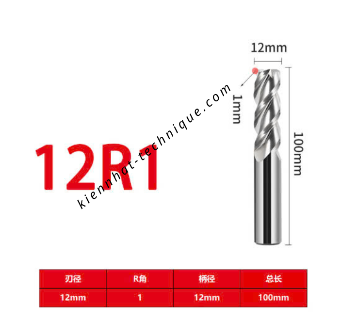 Dao phay Trụ cầu nhôm D12(R1)x45x100x12-3F