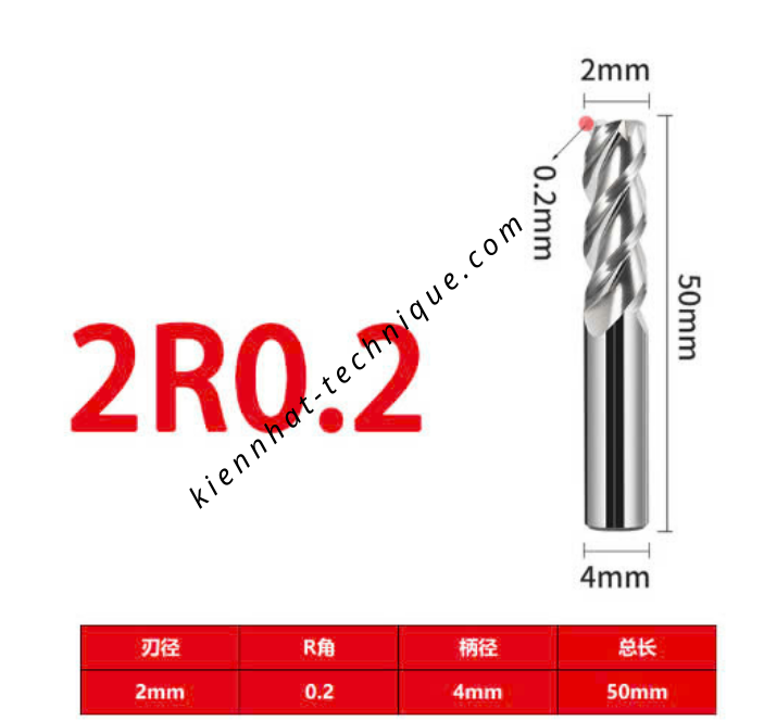 Dao phay Trụ cầu nhôm D2(R0.2)x6x50x4-3F