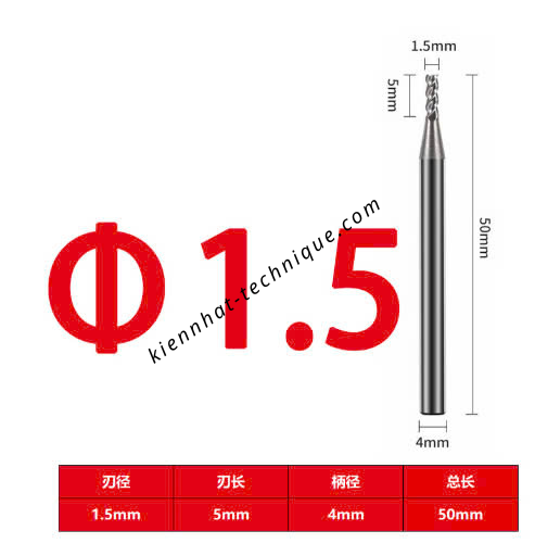 Đường kính dao: Ø1.5 mm