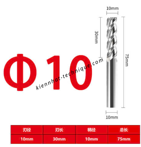 Dao phay trụ nhôm Ø10 – 3 me (10×30×75×10 – 3F)