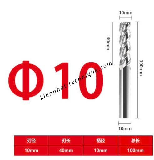 Dao phay trụ nhôm Ø10 – 3 me (10×40×100×10 – 3F)