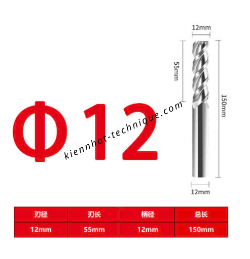 Dao phay trụ nhôm Ø12 – 3 me (12×55×150×12 – 3F)