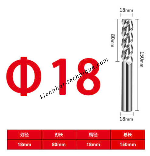 Dao phay trụ nhôm Ø18 – 3 me (18×80×150×18 – 3F)