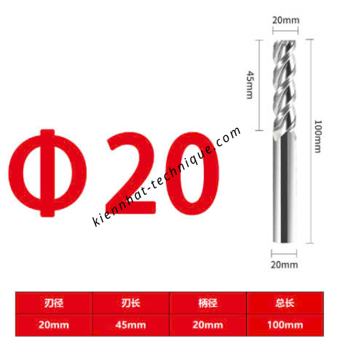 Dao phay trụ nhôm Ø20 – 3 me (20×45×100×20 – 3F)