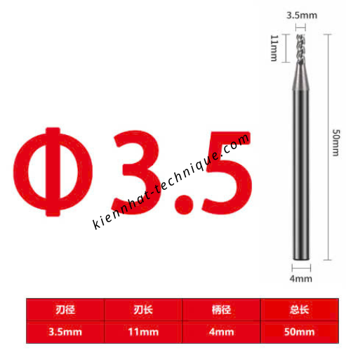 Dao phay Trụ nhôm 3.5*11*50*4-3F