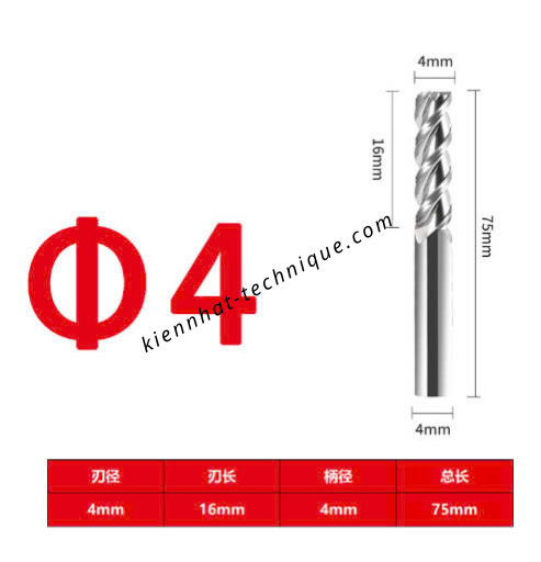 Dao phay Trụ nhôm 4*16*75*4-3F