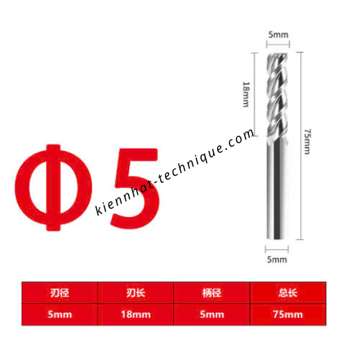Dao phay trụ nhôm Ø5 – 3 me (5×18×75×5 – 3F)