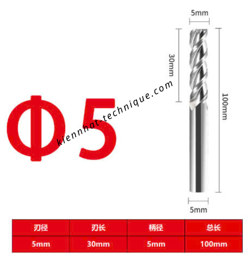 Dao phay trụ nhôm Ø5 – 3 me (5×30×100×5 – 3F)