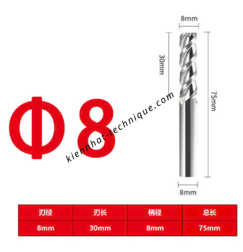 Dao phay Trụ nhôm 8*30*75*8-3F