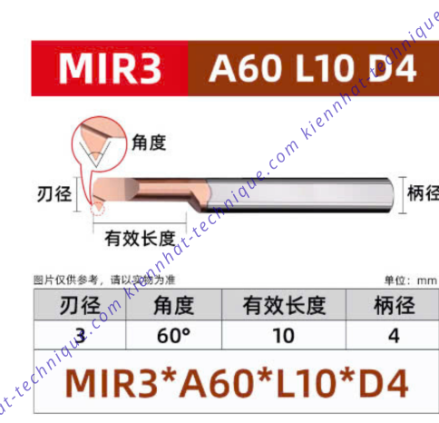 Dao tiện ren lổ hợp kim MIR3*10L*A60*50*4