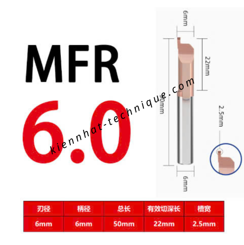 Mũi chích rãnh mặt đầu MFR6 dùng trong gia công CNC, chuyên chích rãnh mặt đầu với độ chính xác cao, cắt ổn định, bề mặt đẹp. Phù hợp cho xưởng cơ khí chính xác và sản xuất hàng loạt.