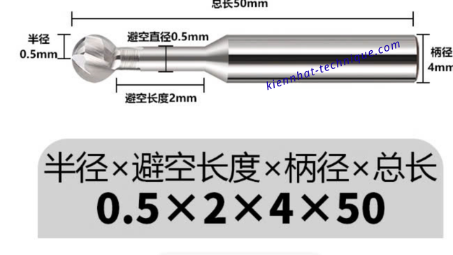 Đầu dao hình cầu/bán cầu → giúp dễ dàng cắt ở các biên dạng cong, hốc sâu, rãnh cầu.