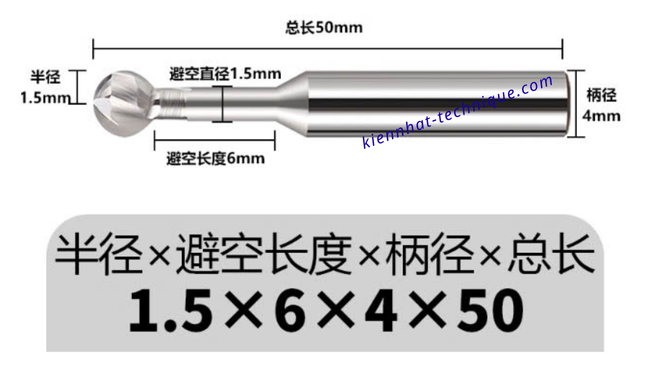 Mũi phay cầu Lollipop nhôm R1.5